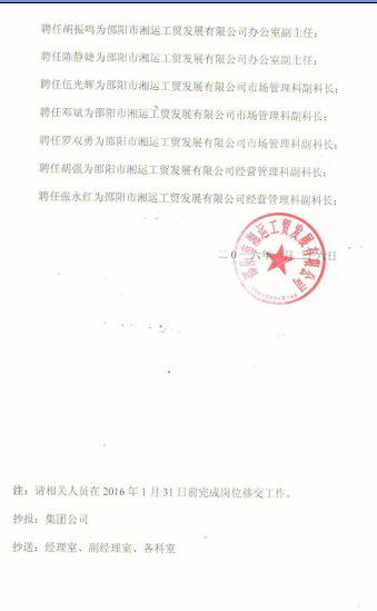 湘運集團工貿司行字(1)號